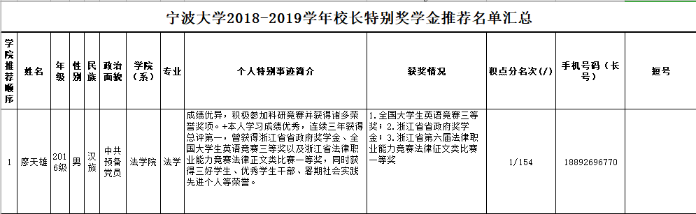 经学生本人申请,皇冠博彩 奖学金评选小组资料审核,评选小组公开投票,现将2018-2019宁波大学校长奖学金皇冠体育博彩官网 拟推荐名单公示如下: