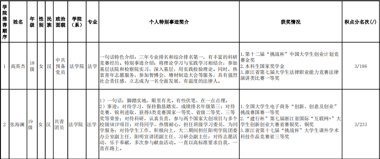 推荐名单仅为推荐参与学校评选,最终评定结果以学校公示为准。