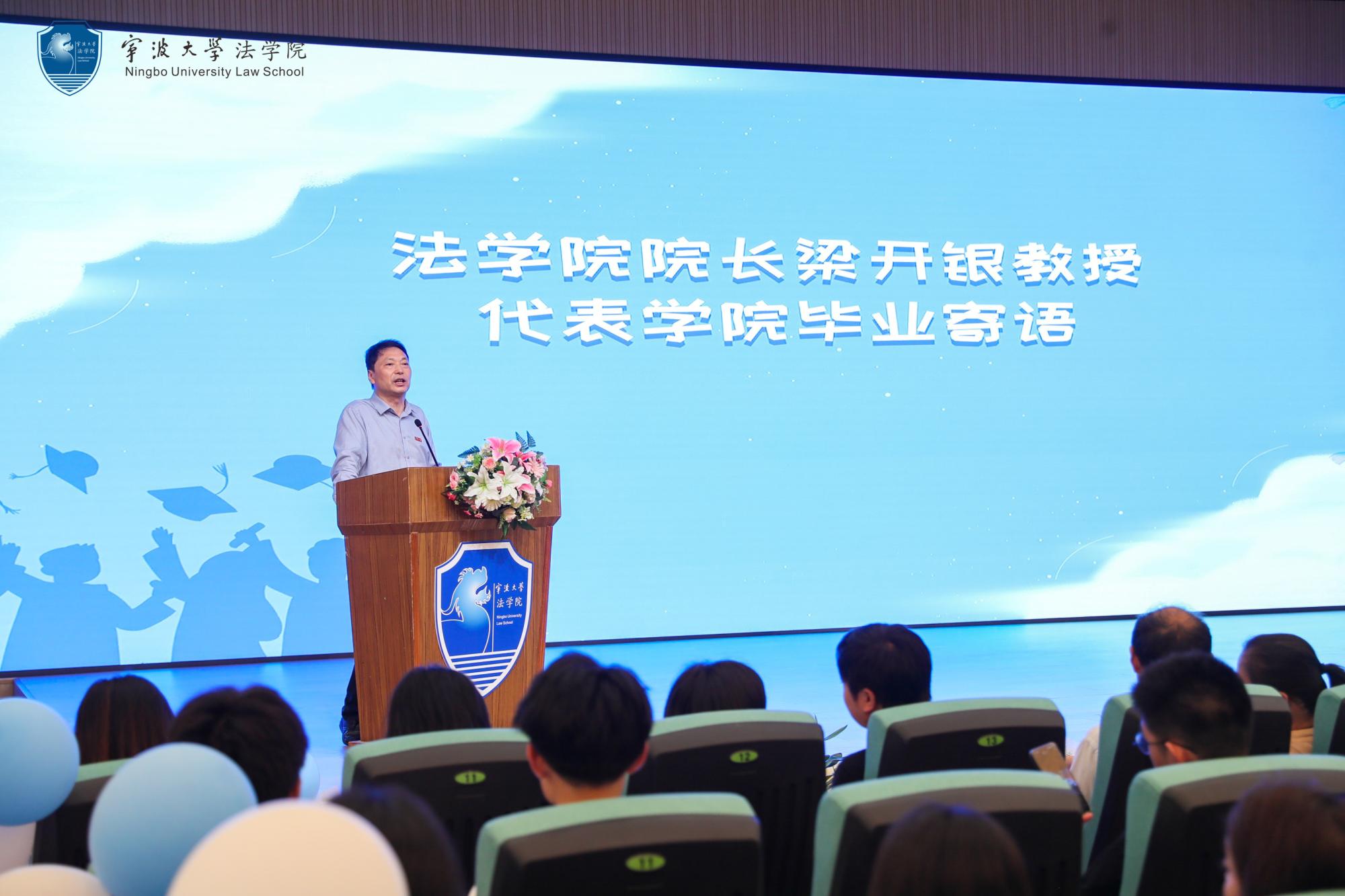 致辞中,他从“要终身学习,学无止境”“要书写‘大我’,敢于担当”“要成就自我,体验快乐”三个维度对全体毕业生表达了美好的期望和诚挚的祝福,希望大家继续秉持“抱诚守真 尚法立人”的院训精神,奋发踔厉、砥砺前行,跑出我们宁大法苑人最独特的风采!