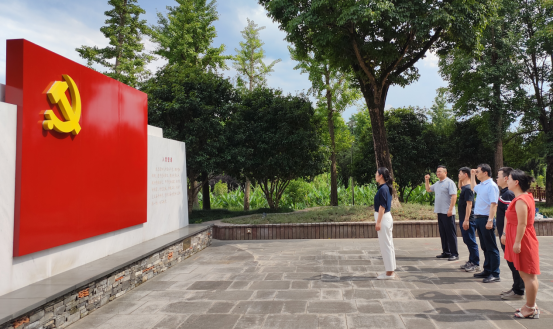 党委书记带领班子成员在滕头党建广场,面向鲜红党旗,进行现场宣誓,重温入党誓词,牢记使命。