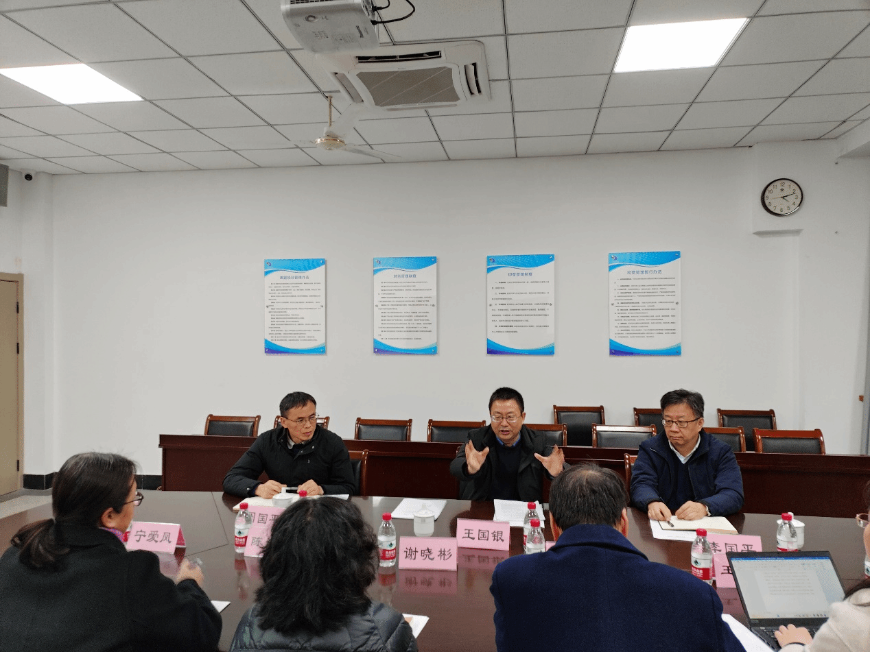 会议伊始,梁开银院长对王国银调研员表示热烈欢迎,并从基地建设背景、建设举措、建设成效、特色亮点和全面保障等方面详细介绍了涉外法治人才协同培养创新基地的建设情况。法律系主任谢晓彬从深化协同培养的育人机制、深化国际化工作、完善涉外法治教育教学体系、加强涉外法治师资队伍建设、强化保障性因素五个方面汇报了皇冠体育博彩官网
