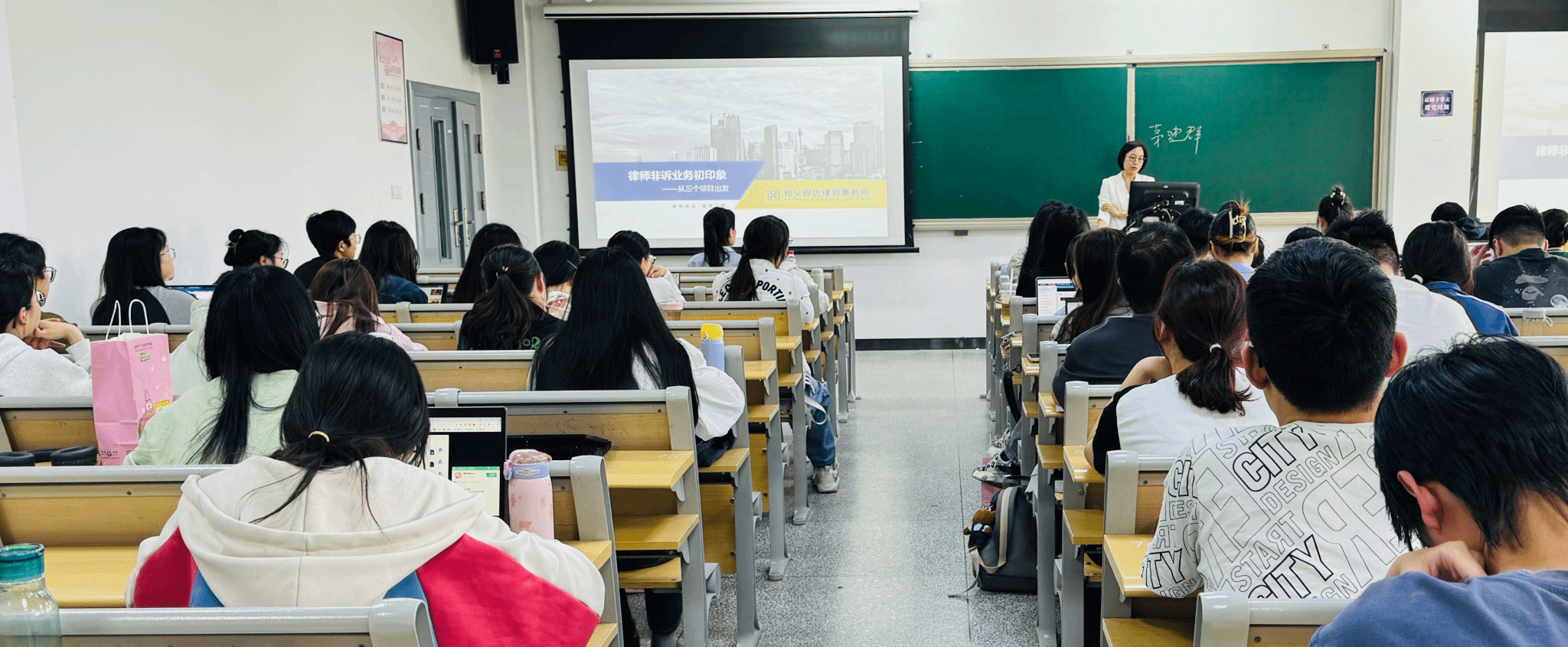 5月13日下午,浙江和义观达律师事务所茅迪群律师(高级合伙人、二级律师)进入本科生课堂,为22级法学专业三个班级的学生讲授了《商法总论》实务案例。这是校企合作课程《商法总论》开设以来第四次校外老师进入课堂讲课。