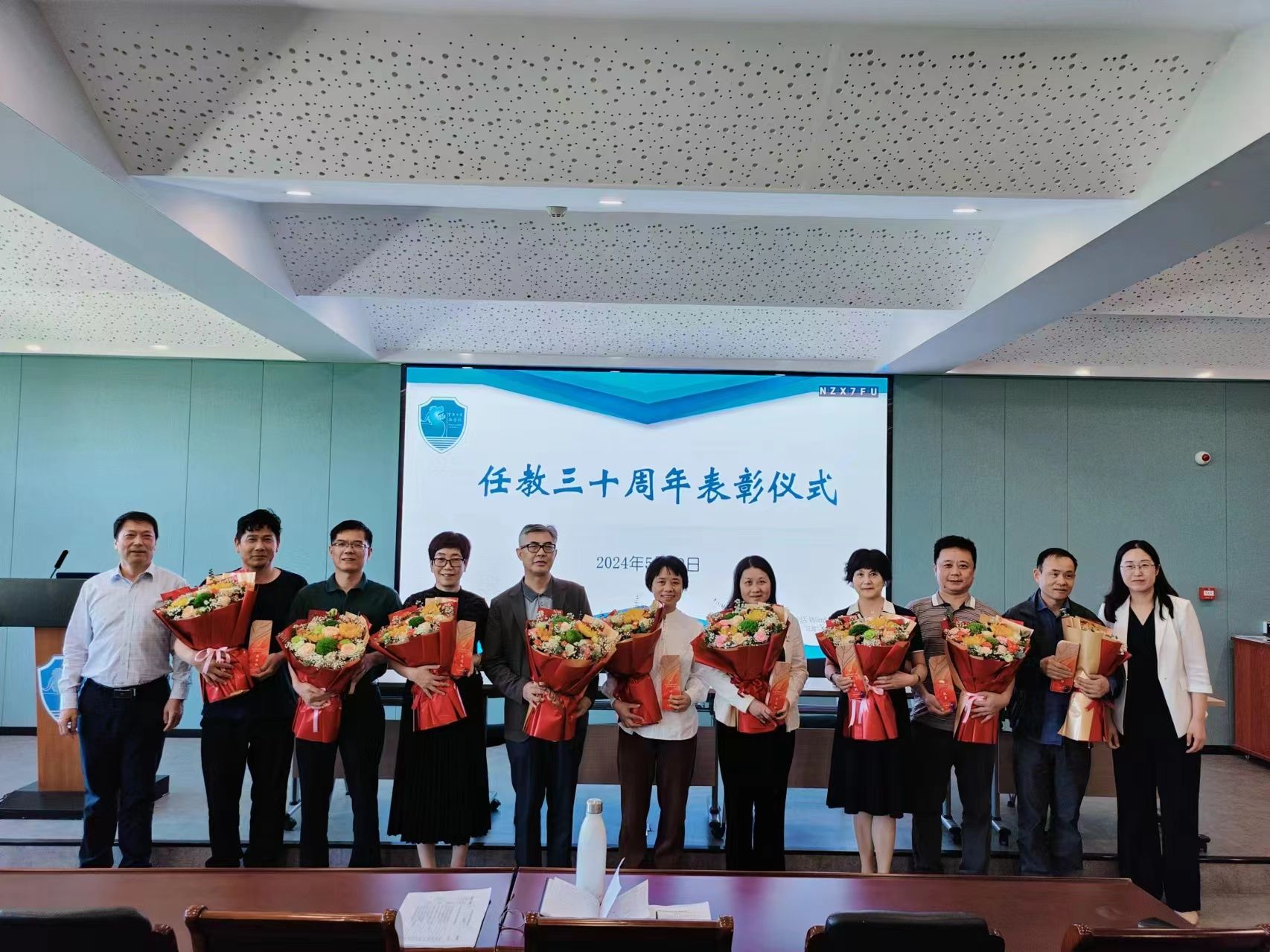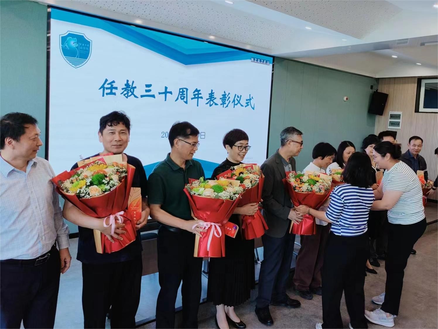 向受表彰教师表达敬意,勉励广大青年教师志存高远、敬业奉献,学习从教三十年教师的优秀品质,将这种精神传承并发扬光大,为学校高质量发展做出贡献。