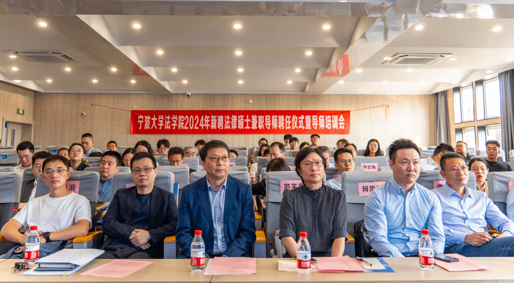 院长梁开银教授、副院长何跃军教授、法律硕士教育中心常务副主任乔宜梦副教授、副主任张文松博士出席此次会议。来自宁波市中级人民法院、宁波市检察院、舟山市检察院、台州黄岩区人民法院、宁波鄞州区人民法院、宁波市仲裁委、中共宁波市委党校、宁波市疾控中心、宁波中浦投资控股集团有限公司、北京盈科(宁波)律师事务所、北京德恒(宁波)律师事务所、北京大成(宁波)律师事务所、北京康达(宁波)律师事务所、上海汉盛(宁波)律师事务所、浙江导司律师事务所、浙江合创律师事务所、浙江京衡(宁波)律师事务所、浙江海泰(奉化)律师事务所、浙江六和(宁波)律师事务所、浙江纽华律师事务所、浙江元甬律师事务所等20余家单位的37名新聘法律硕士兼职导师参加了聘任仪式。兼职导师聘任仪式由乔宜梦副教授主持。