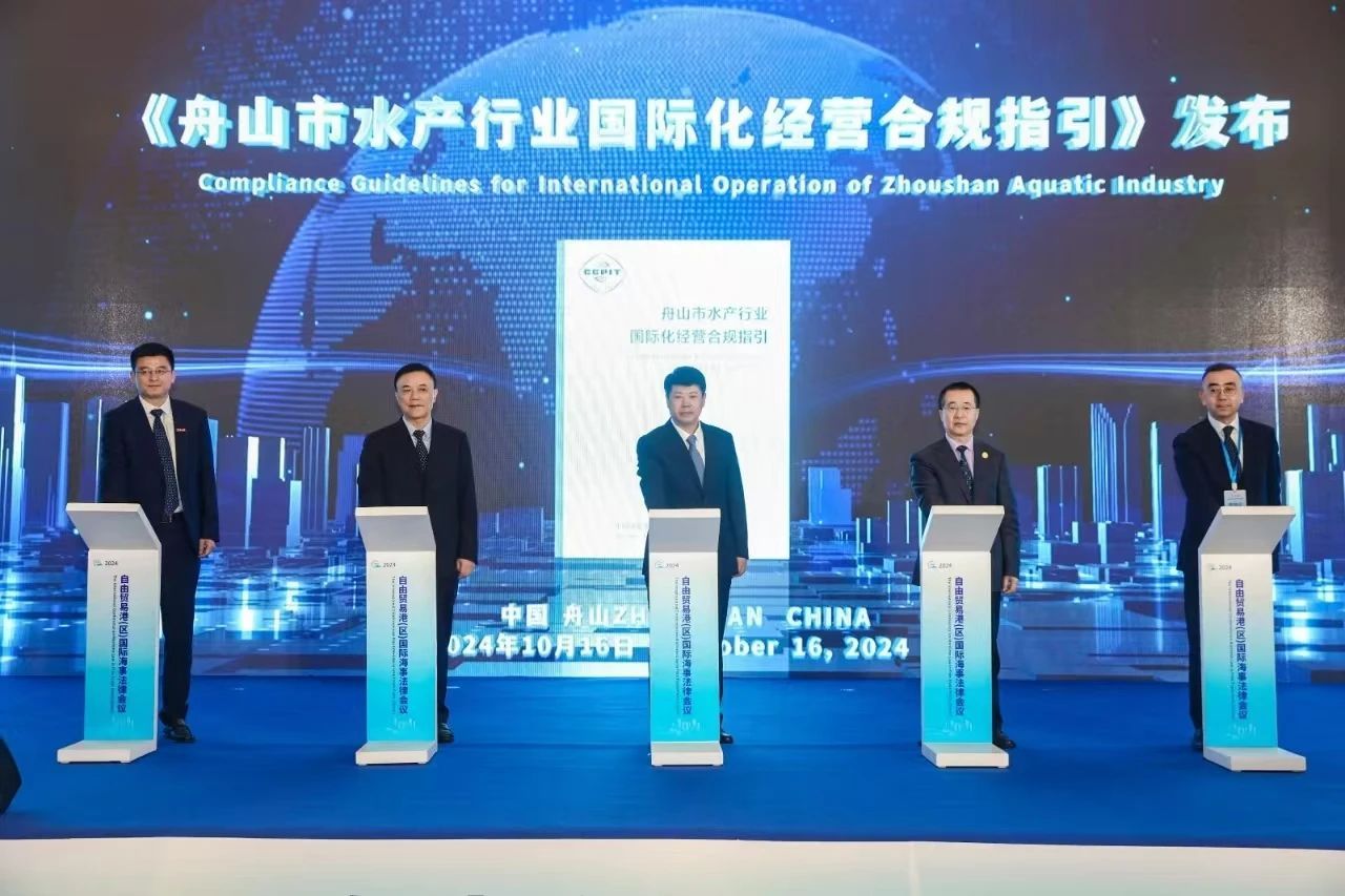 会上,宁波大学副校长周青与中国海事仲裁委员会副主任李虎、浙江省贸促会副会长林炜、舟山市委副书记梁雪冬、上海海事大学副书记严大龙等领导共同发布了《舟山水产行业国际化经营合规指引》。该指引是宁波大学涉外法治人才协同培养创新基地与舟山市贸促会共同研究编制的成果,将在助力水产企业识别评估和化解国际经营合规风险、提升企业国际竞争力等
