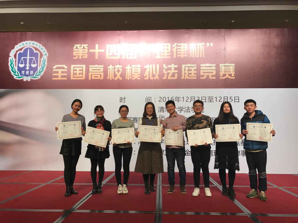 郑曙光、郭兵、夏忠彪、蒲一苇等多名老师担任指导老师。在口头辩论比赛中,由张玥、杨磊同学担任原告方,陆佳雯、郝强同学担任被告方,与中南民族大学、兰州大学、四川大学以及浙江大学就药品采购行政诉讼案件分别进行比赛,双方选手唇枪舌剑,展现了专业的素质、熟练的辩论技巧、淡定从容的心态,获得了评委的一致认可,并提出了改进建议。12月6日晚,在北京市辽宁大厦举行了颁奖典礼,安徽大学和宁波大学在全国40所院校中荣获“最佳组织奖”,宁大连续两年获得该奖项。
