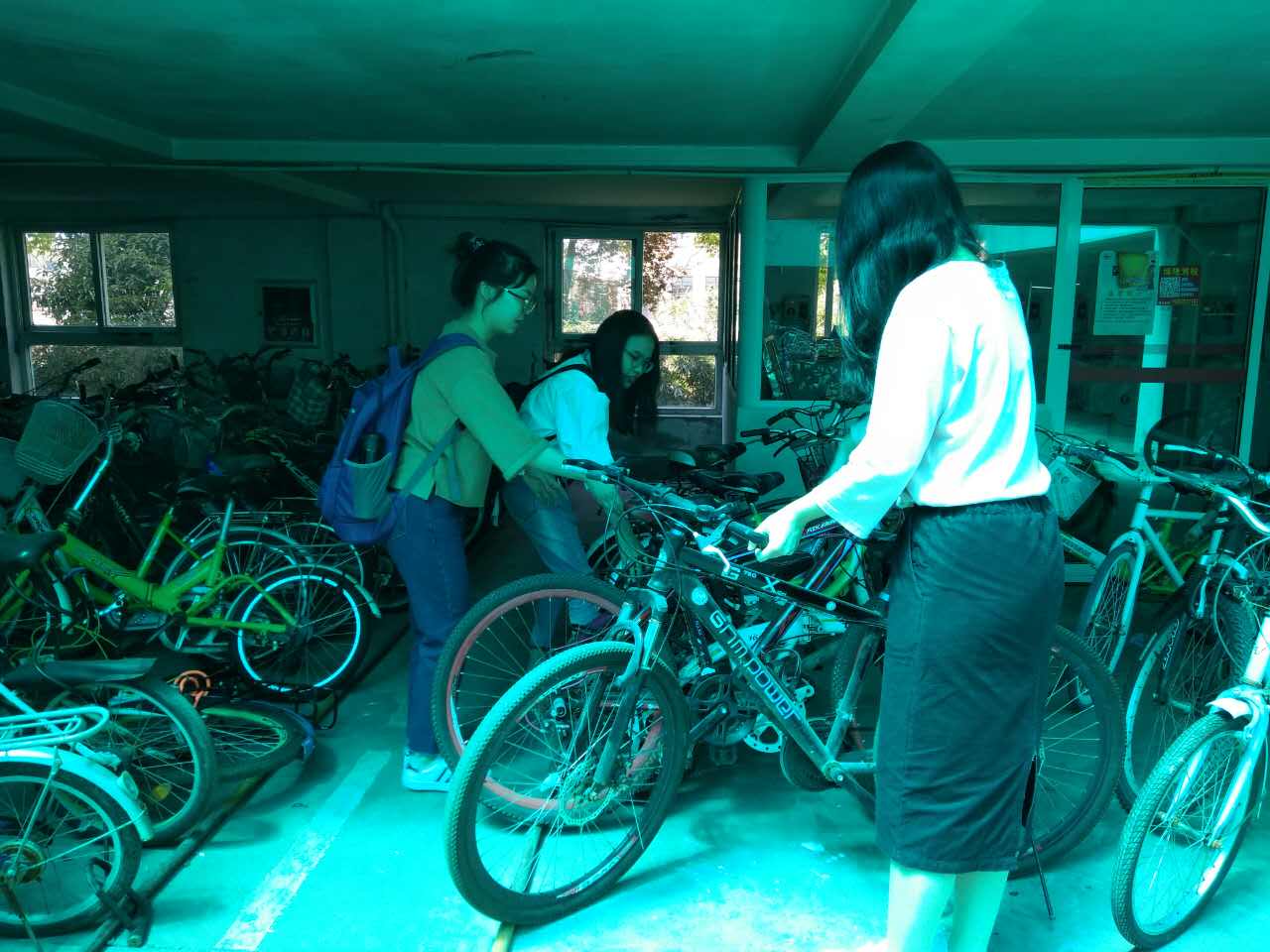 入党积极分子准时到达本部公寓车库,并按照分组情况开展实践活动。本次党员义工服务的主要内容是对本部公寓各个车库内的自行车进行整齐排放。通过前期的调研发现,公寓楼下各自行车停放存在很严重的问题,包括集中停放在门口堵住通道的、横七竖八的倒在路上的等。每位积极分子都很认真用心,用他们的双手搬动一辆辆自行车,让车子整整齐齐地停放在车库内。在大家的共同努力之下,车库内自行车的摆放情况大为改观。