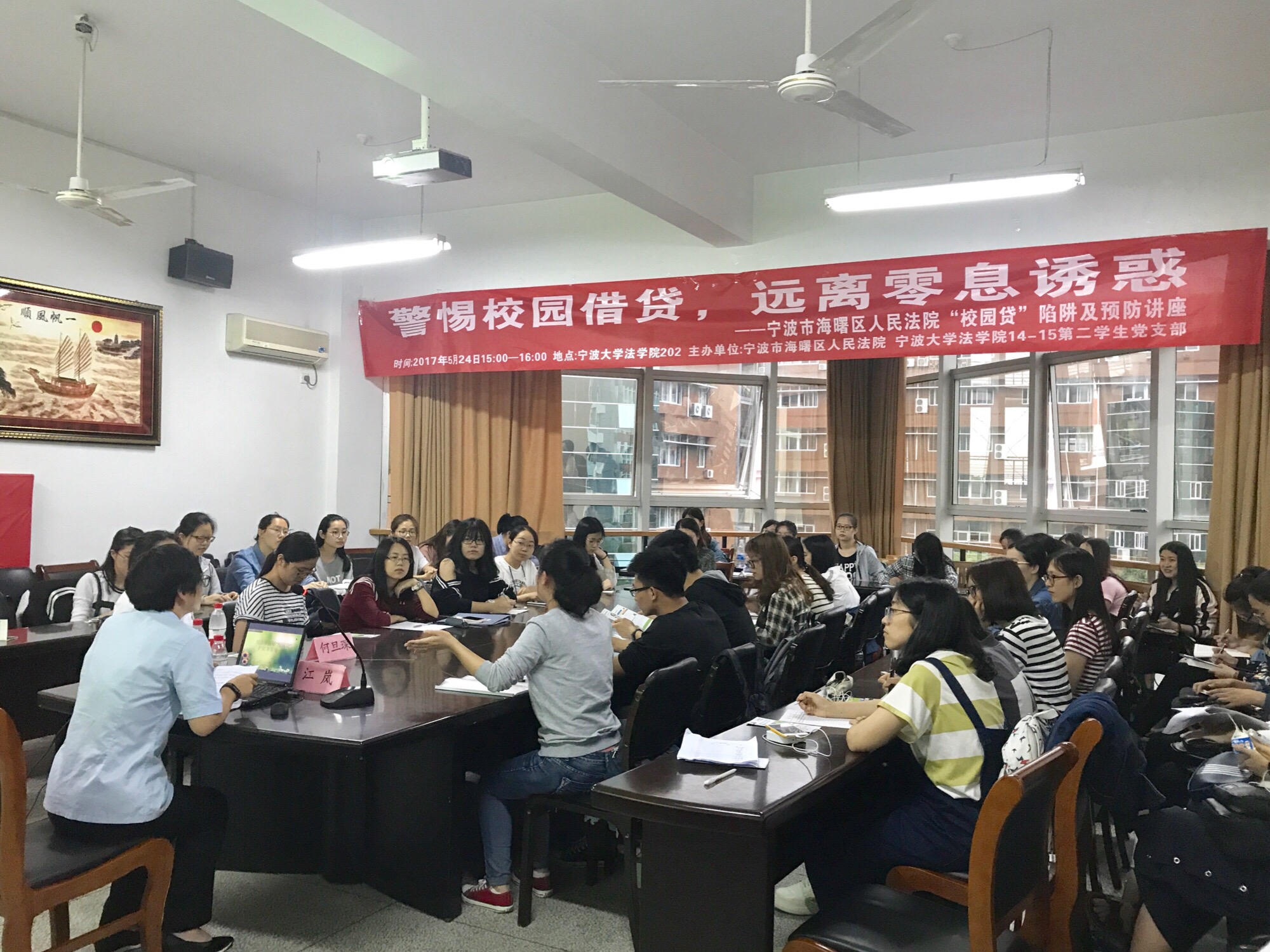 14-15第二学生党支部与宁波市海曙区人民法院主办的“校园贷”陷阱及预防讲座在皇冠体育博彩官网