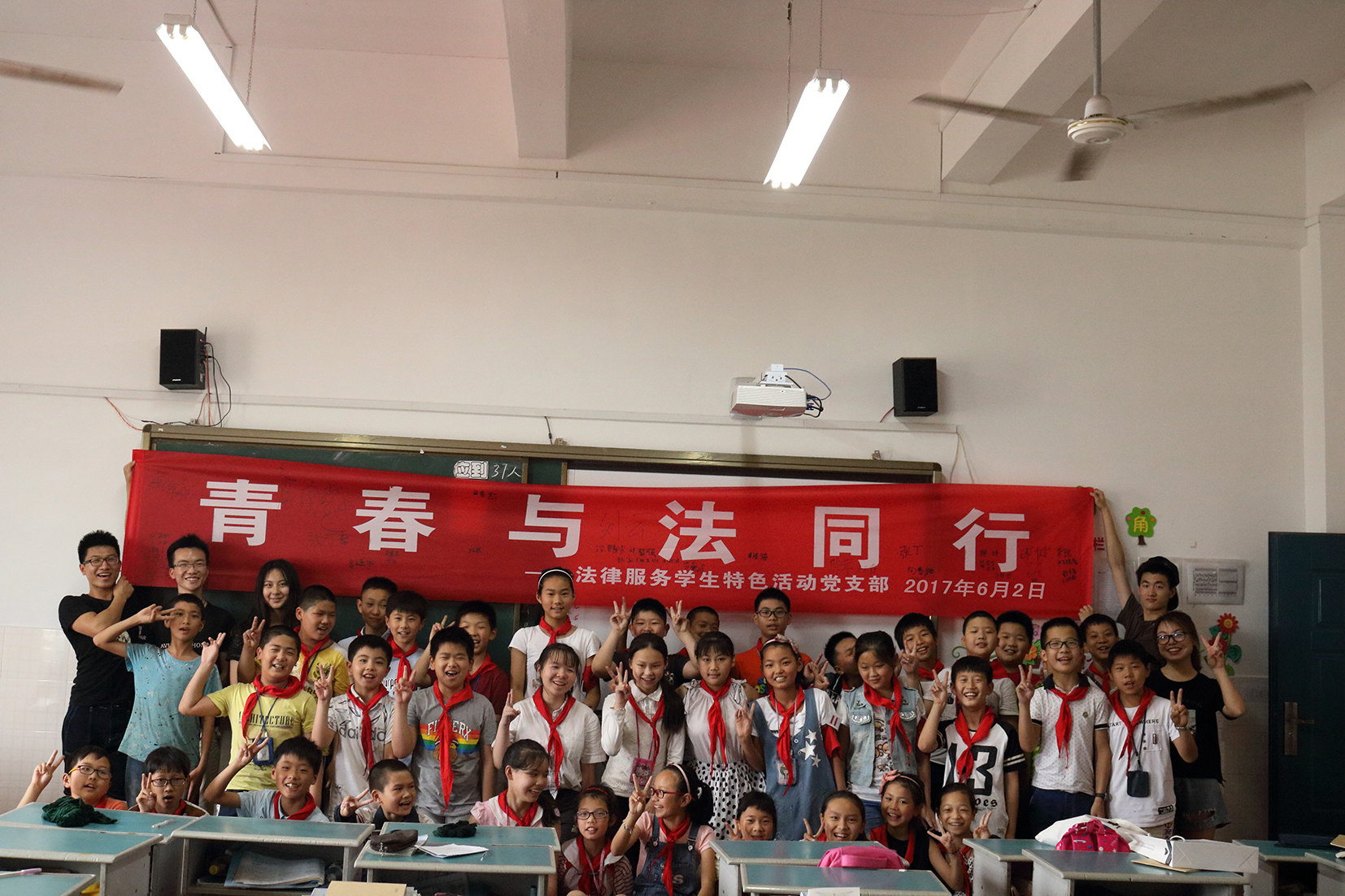 法律服务学生特色活动党支部在青年志愿者基地——镇海区虹桥希望外来民工子女学校开展“青春与法同行”志愿普法活动。学生党员们以青年志愿者的身份,通过PPT讲解、案例分析、问答互动、签名仪式等内容,向学校的五年级全体学生普及法律知识,增强法律意识。