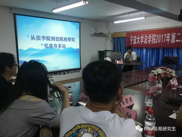 到检察院法院到底有多远。潘老师以其丰富的实务经验和扎实的理论基础,围绕四个分标题来阐述此主题的内容。首先,潘老师提出法律学生与司法职业人员存在共性,都具备扎实的法律知识、职业情节以及法治梦想。其次,在两者存在共性的基础上,讲述了两者的差别,围绕实际与理论的差距展开。再次,对于两者存在差距的现状中,提出如何缩小的意见。最后,潘老师为同学们的职业规划和目前的努力方向提供了意见。