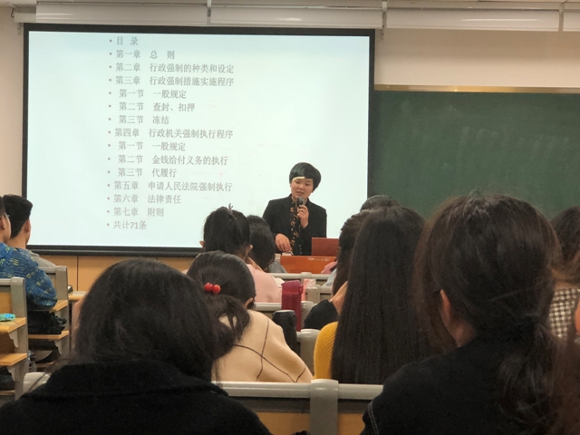 本次观摩课由夏雨老师主讲,主讲课程为《行政法》中的《行政强制法》部分,夏雨老师围绕《行政强制法》的条文引出相关理论进行讲解,重点讲授了行政强制中的比例原则、行政强制措施的种类、设定、实施、行政强制执行的种类、设定、申请法院强制执行的程序、《行政强制法》第44条的解读等重点内容。