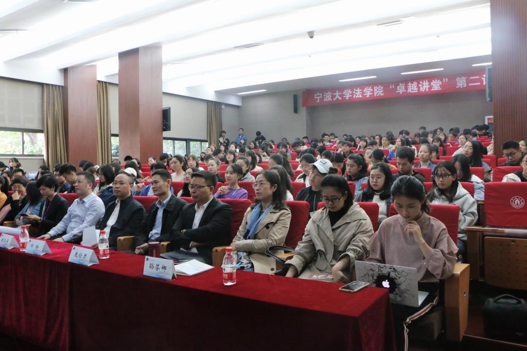 师生带开了“卓越讲堂”第二讲。共青团宁波市委副书记、市青联主席李锋,市青联秘书长郦盼,市青联常委、法律界别组组长杜晶,市青联委员、奉化区人民法院党组书记、院长赵江涛,市青联委员、宁波杉杉股份有限公司法务总监惠颖,市青联委员、浙江导司律师事务所高级合伙人庞俭力受邀出席了本次讲座,同时还有皇冠博彩