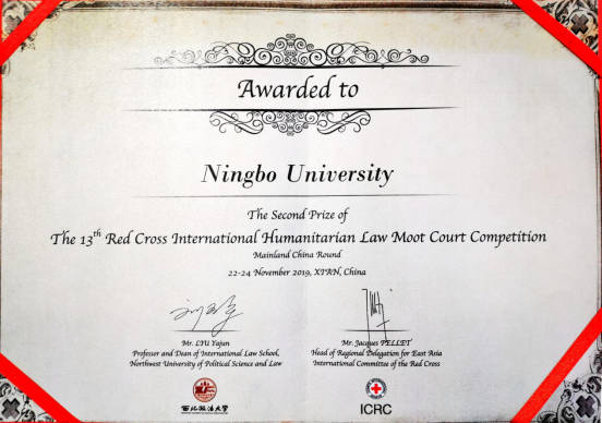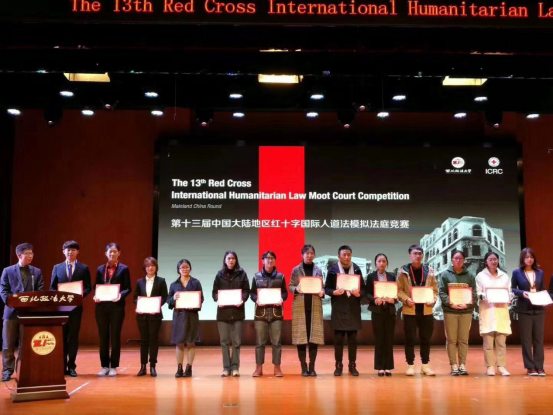 2019年11月22日至24日,由红十字国际委员会、西北政法大学共同主办的第十三届中国大陆地区红十字国际人道法模拟法庭竞赛(The 13thRed Cross International Humanitarian Law Moot Court Competition Mainland China Round)在西北政法大学举行。我校首次组队参加全英文的国际模拟法庭比赛。代表队由皇冠体育博彩官网
