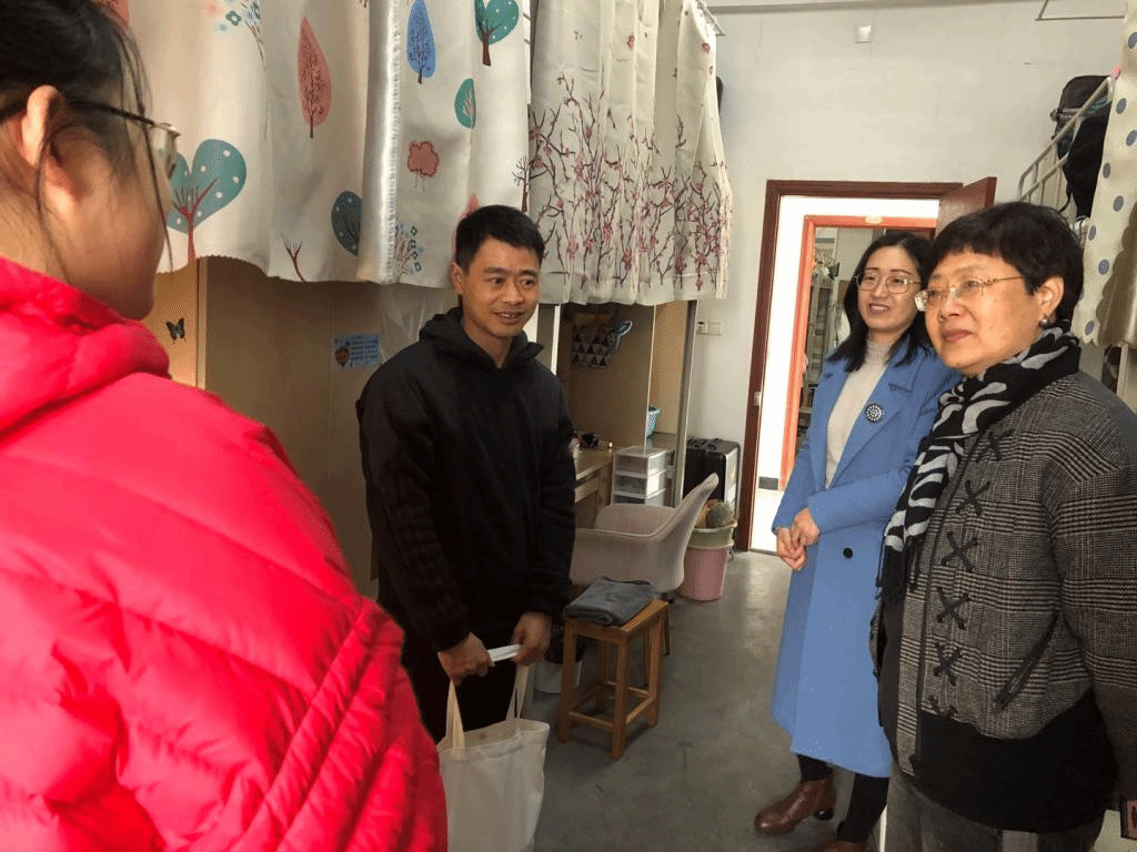 辅导员杨琦老师前往甬江公寓慰问各位同学,询问搬迁工作是否顺利、寝室设施情况以及未来的学习和工作问题,并为这些同学发放了洗衣液、纸巾、垃圾袋、口罩等生活用品。