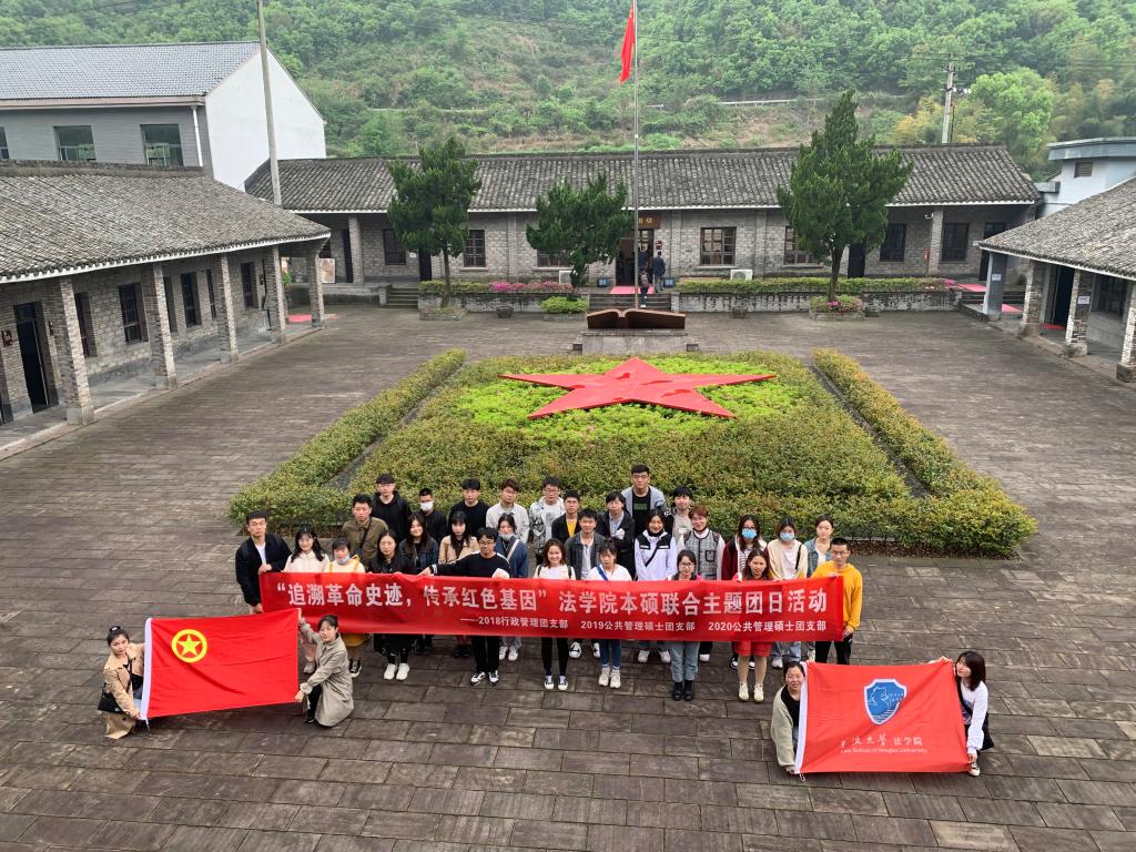 团委组织2018级行政管理团支部、2019级公共管理硕士团支部和2020级公共管理硕士团支部37名团员来到海曙区鄞江镇梅园革命史迹陈列馆开展“追溯革命史迹,传承红色基因”本硕联合主题团日活动。