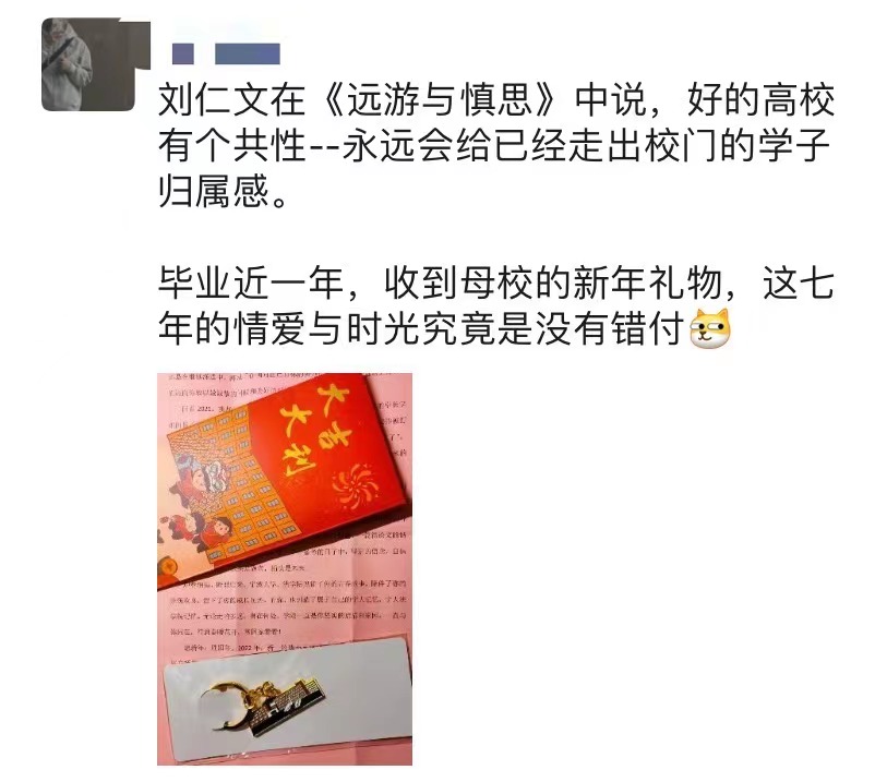 的礼物,还是很感动的”、“来自宁大的小细节,毕业生也没有被忘记”、“毕业近一年,收到母校的新年礼物,这七年的情爱与时光究竟是没有错付”,无论是本科生,还是研究生,纷纷在朋友圈“炫”出了惊喜。除了“一封家书”,皇冠博彩