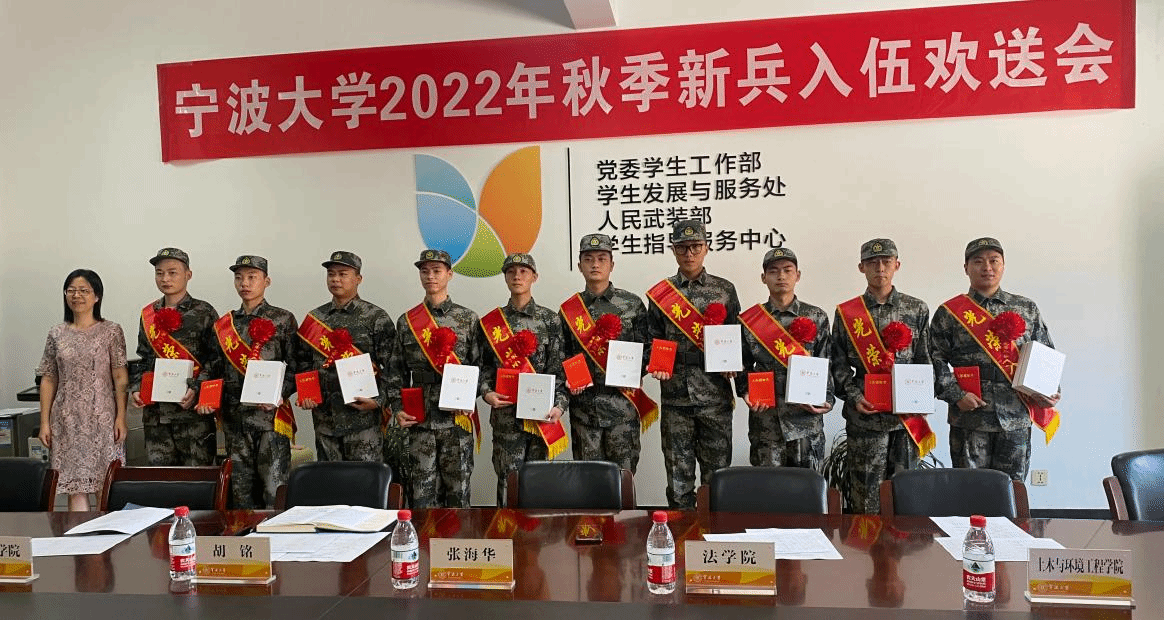 9月9日,宁波大学2022年秋季新兵入伍欢送会在黄庆苗楼406会议室举行。校学生处/人民武装部相关负责人、入伍学生所在皇冠博彩