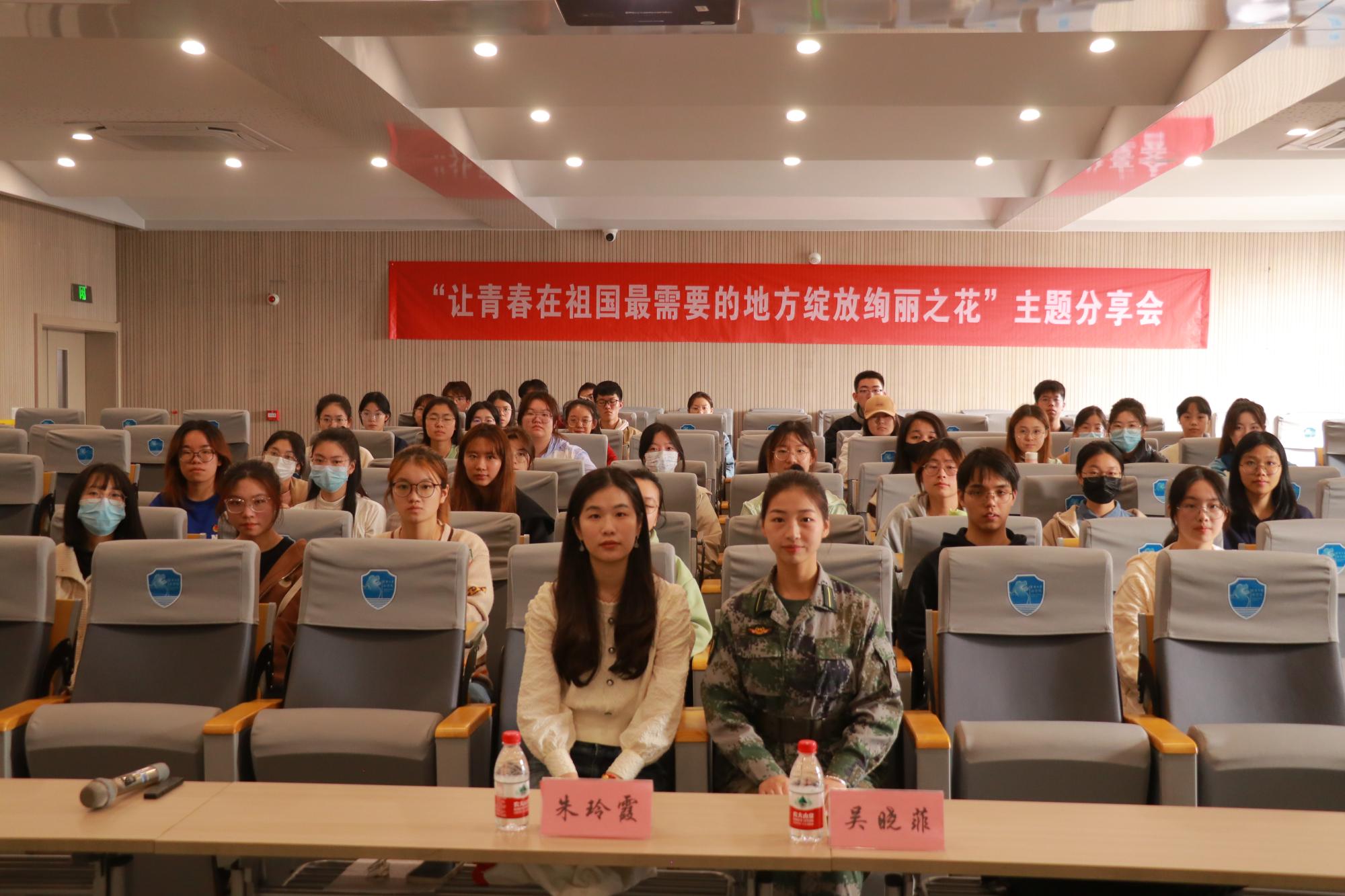 217教室顺利举办。本次团校活动很荣幸邀请到退伍军人吴晓菲同学和基层研支团成员朱玲霞同学分享她们的经历与成长。