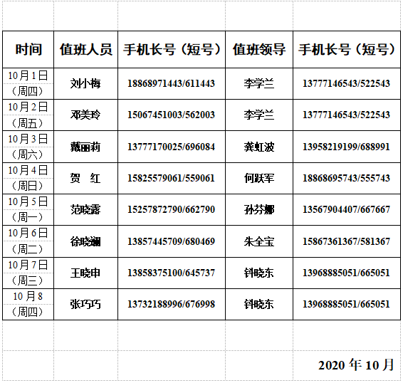 皇冠体育博彩官网 国庆节假期通讯值班安排表