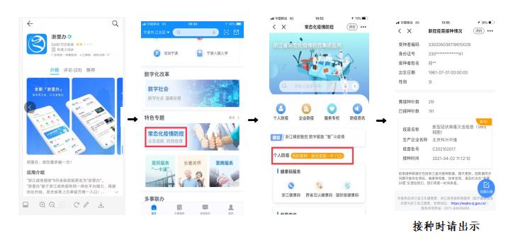 1.前往接种新冠疫苗的师生请事先在浙里办APP查询第一针接种信息,并截图保存:【浙里办】皇冠博彩→常态化疫情防控→个人防疫:我的接种
